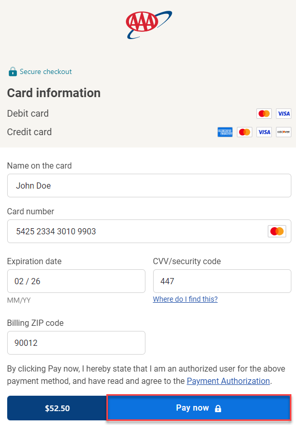 멤버십 구매에 사용할 신용카드 정보를 입력하고 'Pay now' 버튼을 누르자. Billing ZIP code에는 앞서 주소에서 사용했던 것과 같은 정보를 입력하면 된다. '-' 앞의 다섯 자리 숫자만 입력하자.