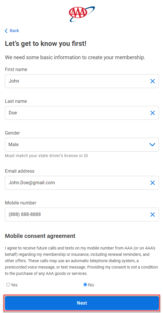 이제 가입자의 정보를 입력하자. AAA 멤버십은 꼭 운전자가 아니어도 자동차의 탑승자이기만 하면 누구나 혜택을 사용할 수 있다. 꼭 운전자가 멤버십을 구매하지 않아도 문제가 되지 않는다.